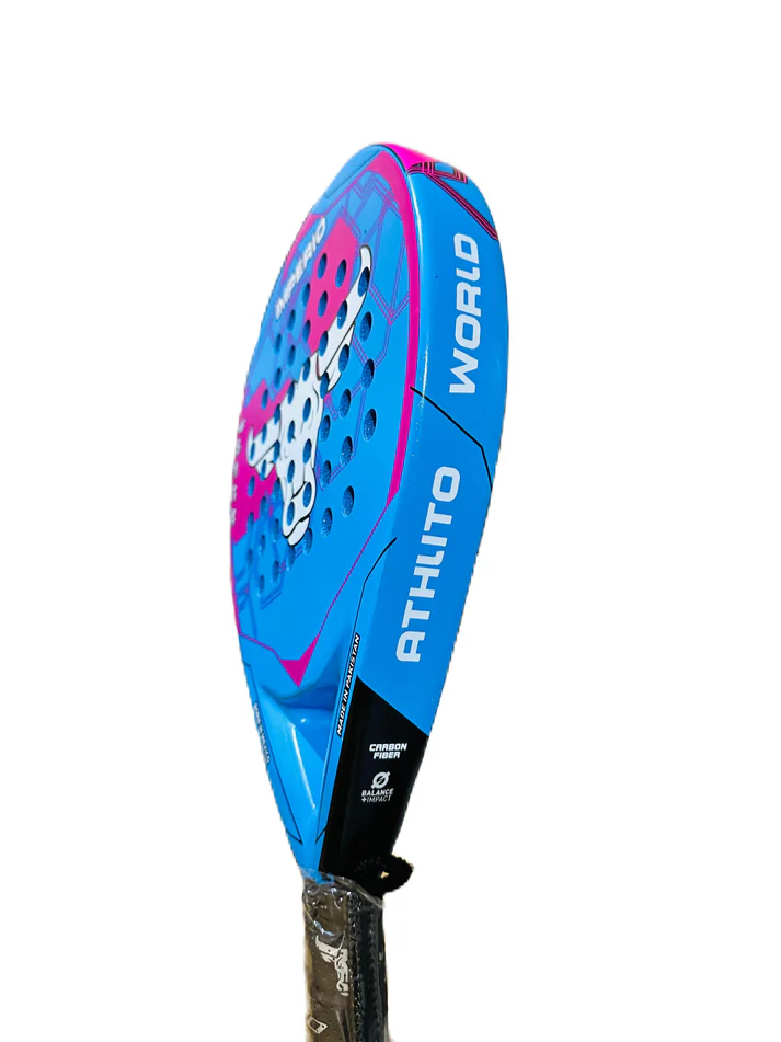 Command the court with the Athlito Imperio, built with a Spanish Tear Drop mold for explosive power and balanced play. Featuring a 3K carbon frame and 200 GSM fiberglass face, this Carbon Glass racket delivers both strength and flexibility. The EVA black foam core ensures precision and control, while the 4×6 hole pattern enhances energy transfer. Weighing 355–375g, it offers ideal balance for powerful yet agile performance. Finished in imported fluorescent colors and equipped with a soft double-layered EVA grip, it combines comfort, style, and premium quality to elevate your game.