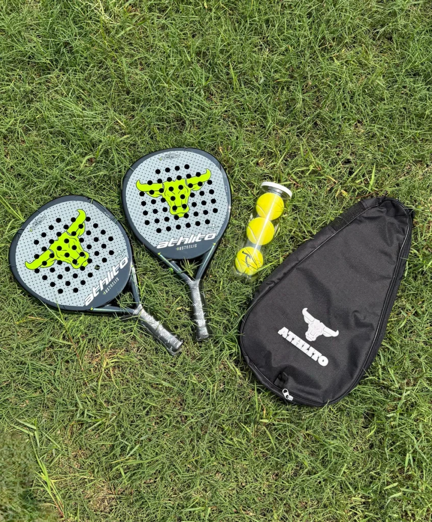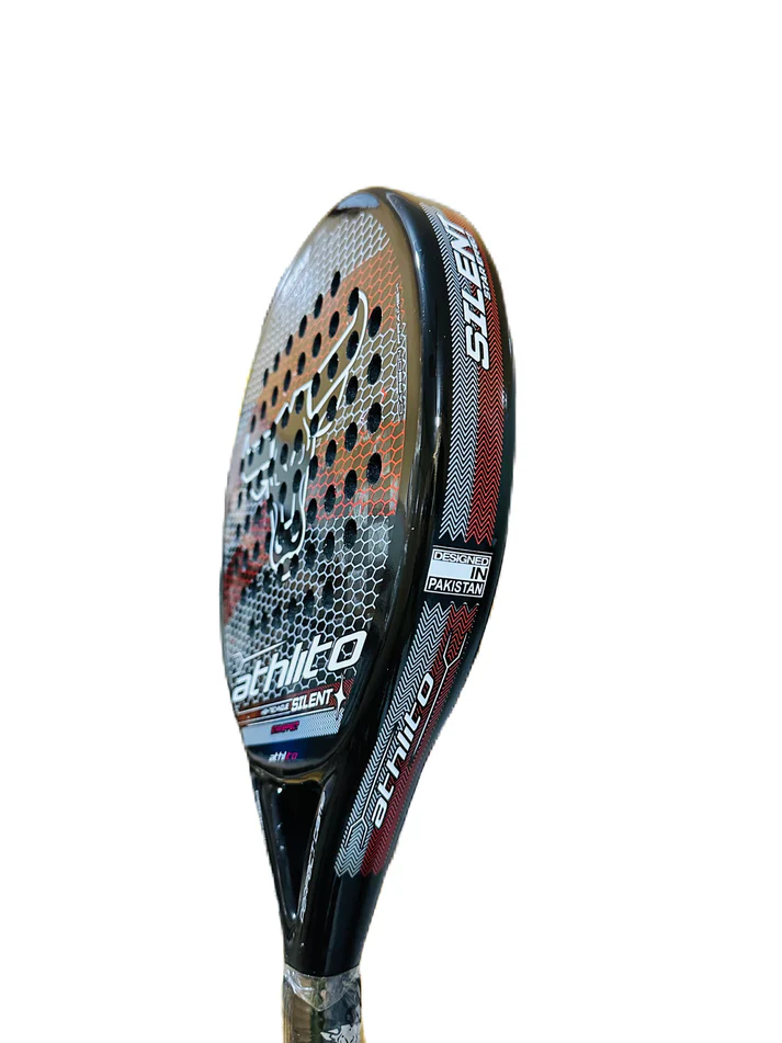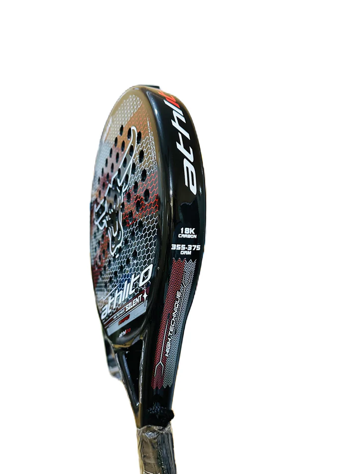 Boost your game with the Athlito Silent, built with 18K carbon fiber and a Spanish Round mold for ultimate power and precision. Its carbon frame and face with a sleek, shiny finish deliver explosive smashes and smooth control. The 6×6 hole pattern enhances power transfer, while the EVA black foam core and soft double-layered grip ensure comfort and accuracy. Weighing 355–375g, it’s perfectly balanced for all-round performance — crafted from premium imported materials for peak results.